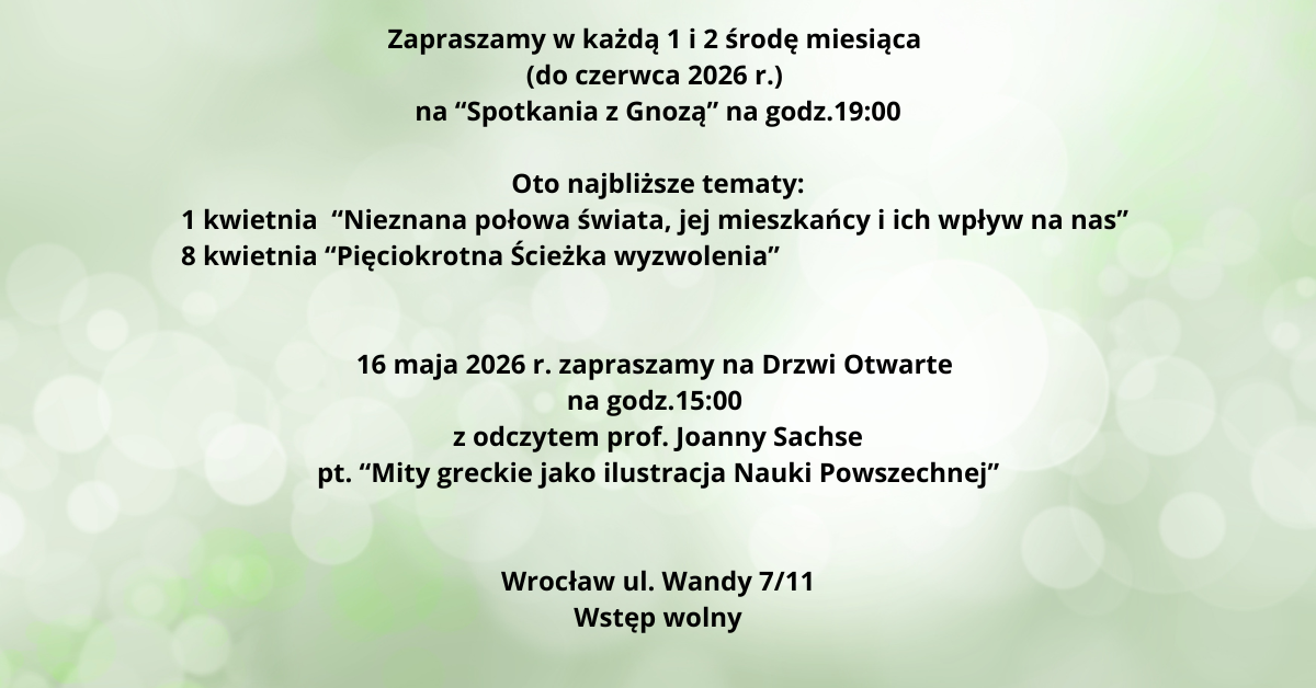 Spotkanie we Wrocławiu 29 marca 202629 marca 2026 Categories: Szczegóły wydarzenia Date: 1 kwiecień 2026 19:00 – 20:30 Miejsce: Centrum Wrocławskie Kategorie: Spotkanie otwarte